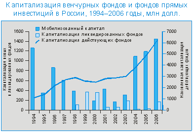 Посмотрим, а что же у нас в стране? Возьмем 2006 год. В России около 100 различных инвестиционных институтов, которые обладают достаточным количеством капитала, это более 6 млрд. долларов, и его можно использовать. Конечно, часть инвестируется в компании на более поздних стадиях, но есть достаточно средств, которые можно использовать в них на ранних стадиях развития.