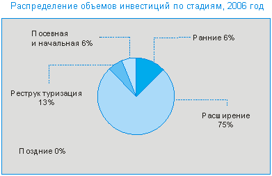 2006 год продемонстрировал в Европе рост доверия инвесторов к европейской индустрии прямых инвестиций венчурного капитала, который выразился в рекордной сумме мобилизованного фондами средств – 112 млрд. евро было собрано в прошлом году, что существенно превысило цифру 2005 года, когда было 72 миллиарда. Осуществленные инвестиции также вышли на рекордный уровень, достигнув суммы 71 млрд. евро, в 2005 году было инвестировано 47 миллиардов.[10]