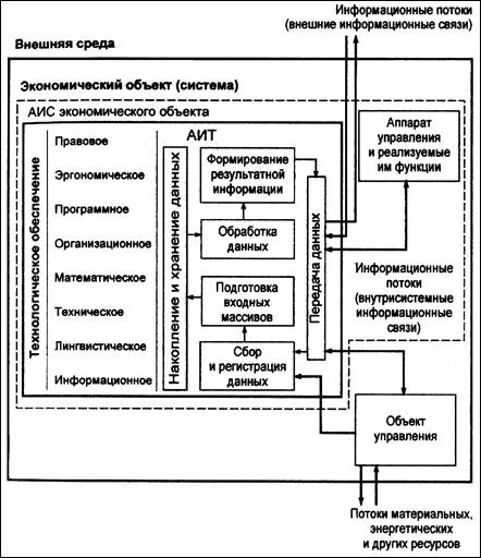 Место АИС и АИТ в управлении экономическим объектом показано на Рис. 1.2. Проведение автоматизации работы экономических служб подразумевает построение на базе АИС некой автоматизированной системы управления. Автоматизированная система управления (АСУ) — это система управления, построенная на основе применения средств вычислительной техники, экономико-математических методов и информационных технологий /1/.