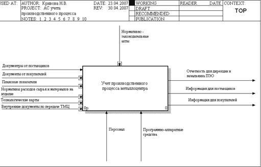 Предмет дипломного проектирования – информационно-логическая модель и информационные технологии учета производственного процесса металлоцентра (на примере ЗАО «Сибирский металлоцентр»).