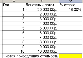 | Денежный поток | -20000 | 2000 | 3000 | 4000 | 5000 | 6000 | 7000 | 8000 | 9000 | 10000 |