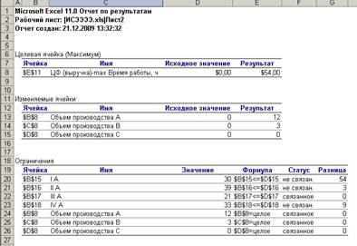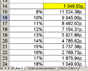 Рис. 2.9. Фрагмент рабочего листа с отчетом по результатам