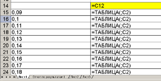 Рис.1.7. Фрагмент таблицы результатов в режиме формул