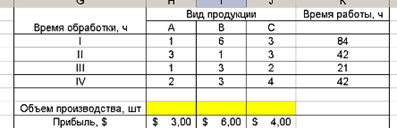 | Вид продукции | Время обработки, ч | Прибыль, $ | |||