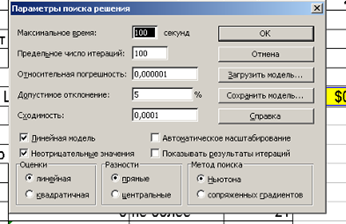 Рис.2.6. Настройка диалогового окна ПОИСК РЕШЕНИЯ