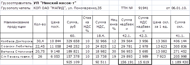 Отпуск готовой продукции и покупных товаров объектам общественного питания КОП ОАО «МАПИД» производиться на основании требований и оформляется накладными ТТН и ТН. В накладных указывается полное наименование и сорт продуктов и товаров, вес или количество, учетная и продажная цена, стоимость продуктов и товаров по этим ценам.
