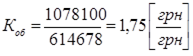 Коефіцієнт оборотності, який визначається відношенням об’єму реалізованої продукції, робіт, послуг до середнього остатку обігових засобів за аналізуємий період: