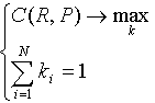 При подстановке оптимальных весовых коэффициентов в задачу на Рис.1. коэффициент корреляции C(R, P) = 0,981, что говорит о достаточно полном задании таблицы параметров товаров.