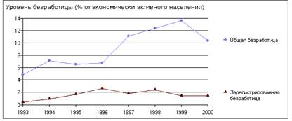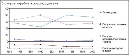 - увеличением в 2000г. по сравнению с 1996г. среднегодовой численности занятых в торговле и общественном питании на 11,5%;