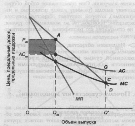 Монополия в данном случае является «естественной» в том смысле, что она представляет собой рыночную структуру, минимизирующую издержки. Чтобы убедиться в этом, предположим, что в отрасли было две фирмы, каждая из которых производила половину общего выпуска отрасли. Как соотносились бы величины средних издержек, если бы существовало две фирмы и если бы тот же объем выпуска производился единственной фирмой? Так как средние издержки растут по мере падения объема выпуска, у нас все время было бы две фирмы, производящие в точке, в которой средние издержки выше, чем они были бы, если бы весь выпуск производился только одной фирмой. Поскольку единственный продавец благодаря экономии от масштаба может производить с меньшими затратами, то данной отрасли было бы трудно избежать превращения в монополию. Если бы в отрасли было более одной фирмы, то одна из них могла бы снизить цену и резко расширить выпуск и, следовательно, создать трудности с получением прибыли для своих более мелких соперников. Таким образом, «естественность» монополии заключается также в том, что скорее всего она является следствием свободного действия рыночных сил.