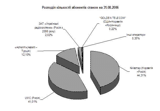 Станом на 01.01.2007 року основними операторами - конкурентами на ринку мобільного телефонного зв’язку в Україні є: