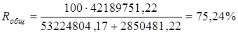 Основным показателем в определении целесообразности существования предприятия является его рентабельность. Общая рентабельность составляет 75,24%, что определяет данное предприятие как безубыточное и способное к функционированию.