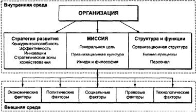 Таким образом, под организацией понимаются юридически оформленные, иерархически структурированные совокупности профессионально ориентированных людей (персонал), объединенных для решения какой-либо задачи, выполнения определенной совместной целенаправленной деятельности. Модель организации представлена на рис. 1.1