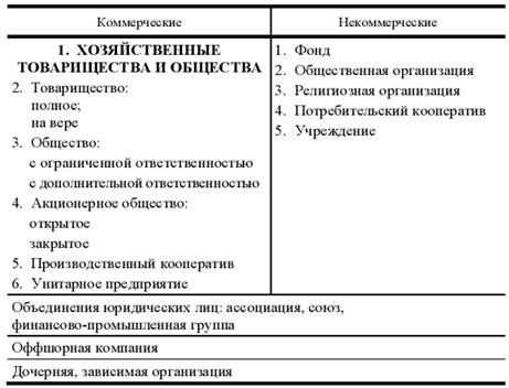 Организационные структуры называют предприятиями, организациями, компаниями, фирмами, при этом различия в этих образованиях достаточно условны. Юридическим лицом признается организация, которая имеет в собственности, хозяйственном ведении или оперативном управлении обособленное имущество и отвечает по своим обязательствам этим имуществом и личные неимущественные права, а также способна нести обязательства, быть истцом и ответчиком. Таким образом, термин «организация» отражает организационные аспекты (связи, структуру, статус). Организационно-правовые формы юридических лиц приведены на рис. 1.2