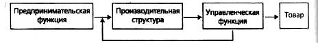Сама по себе деловая функция включает два типа разнородных действий. Первый тип действий связан с созданием структуры для производства конкретного товара с конкретными характеристиками и в определенном объеме. Этот тип действий называется предпринимательской функцией . Ее осуществление является исключительной способностью предпринимателя как носителя такой функции. Второй тип действий связан с необходимостью обеспечения жизнедеятельности созданной производительной структуры, обеспечением высокой рентабельности этой производительной структуры. Этот тип действий является управленческой (т. е. менеджерской) функцией , исполнение которой является основной должностной обязанностью менеджера (рис.2).