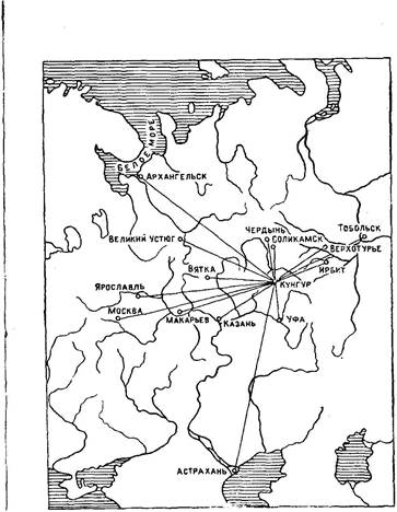 3. Схема важнейших рыночных связей г. Кунгура к началу XVII в.